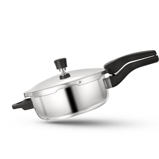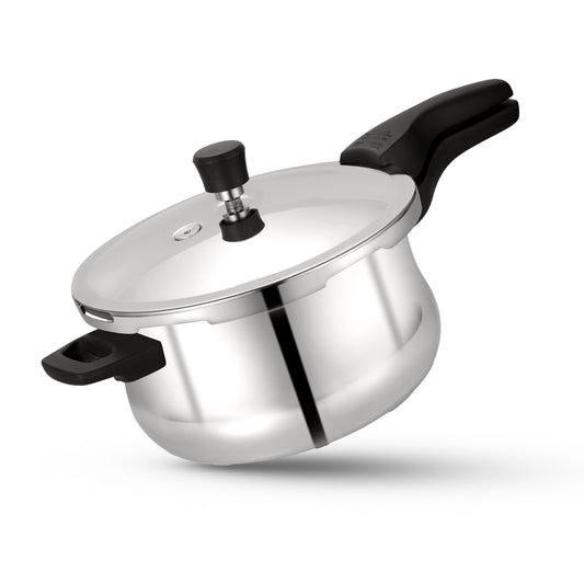 Stainless Steel CookerKey Features Unique Deep Lid which Controls Spillage Three Layer Sandwich Bottom - Even heat distribution, no Hot Spots Gas and Induction Compatible Heavy Gauge Body and ISI Certified High Quality 304 Grade Stainless Steel 5 Years Warranty The Prestige Deluxe Alpha Svachh Pressure...